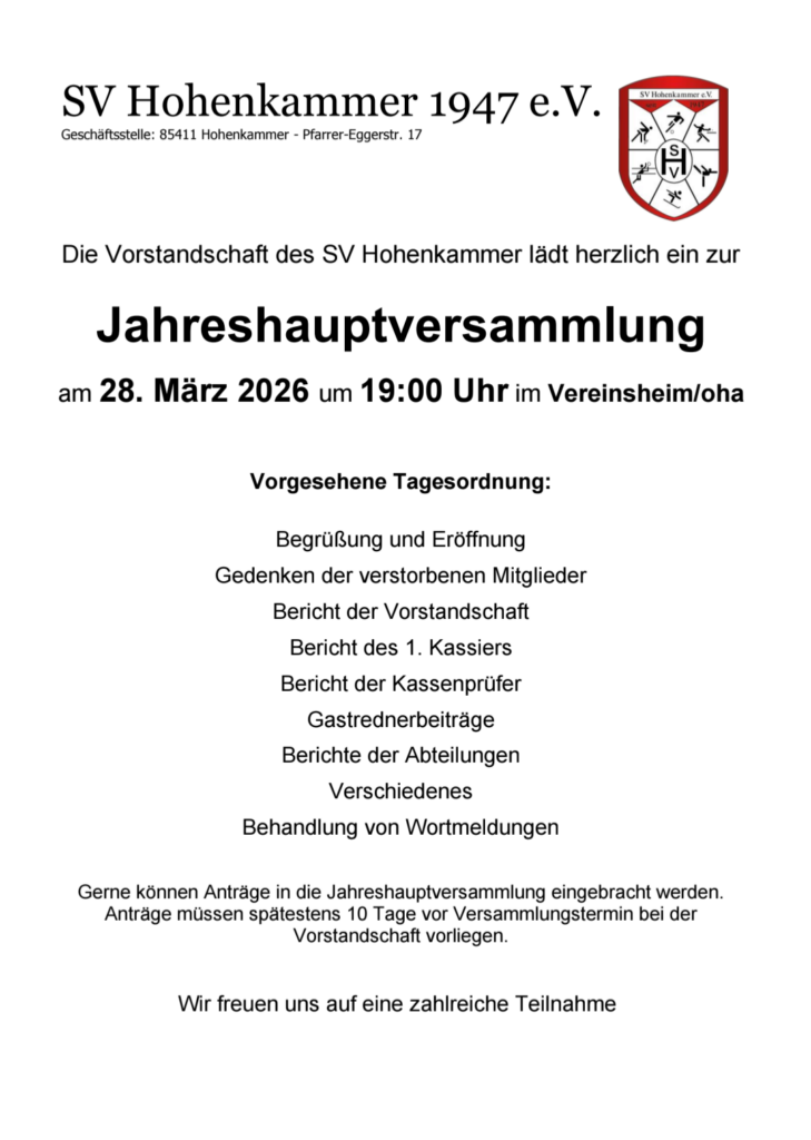 Herzlich willkommen beim SV Hohenkammer e.V!